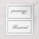 Dessa "reserverade" platskort är enkla men ändå eleganter och kommer att göra det lätt för dina gäster att veta vilka platser som reserveras för familjer och speciella gäster. De har svart lacy-skript på en vit bakgrund med en ram gräns. Sofistikerad, tidlös, klassisk och snyggt.