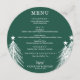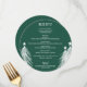 En elegant smaragdgrön rund middagsmeny med vita julgranar visar dina meny detaljer i chic bokstavsstil. Perfekt för en högtidlig julfest eller någon speciell händelse med en sittande middag.