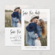 Bröllop spara datum-kort som har ett foto på framsidan och baksidan. Spara datumkorten innehåller en modern handskriven kursiv skripttypografi som är elegant, enkel och modern till använda efter att du har minimalistisk enkel bröllopsdag firande.
