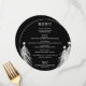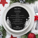 En elegant svart rund middagsmeny med vita julgranar visar dina menydetaljer i chic bokstavsstil. Perfekt för en högtidlig julfest eller någon speciell tillställning med en sittande middag.