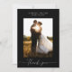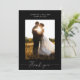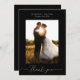 Utöka din uppskattning med den enkla Eleganten Svart tackkort. De här korten är sofistikerade på bröllopsinbjudan och har en svart bakgrund, ett klassiskt serif-brev, ett personlig foto av paret och egna namn för ett snyggt uttryck för tacksamhet.