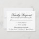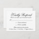 Svarskort för elegant bröllop OSA med traditionell formulering i vacker kalligrafi på vitt. Dessa bröllop OSA- och formella svarskort har en mall som du kan använda för att lägga till menyalternativ och är perfekt för ett svart bröllop.