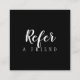Enkel elegant svartvitt och vitt referenskort med chic handritad skripttypografi. Anpassa genom att lägga till din kontaktinformation på motsatt sida tillsammans med ditt erbjudande om hänskjutande. Designad av Thisisnotme©