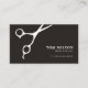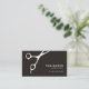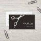 Elegant anpassningsbar företags kort mall med svart bakgrund (du kan ändra det) och vit sax ikon. Minimal elegant design, perfekt för skönhetssalong, frisör, frisörska, barberare.