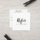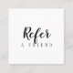Ett enkelt elegant svartvitt manus hänvisa en vän-kort. Personifiera med dina kontaktuppgifter och specialerbjudande på baksidan. Designad av Thisisnotme©