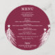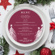 En elegant rund tranbärs meny med vita julgranar visar din meny detaljer i chic bokstavsstil. Perfekt för en högtidlig julfest eller någon speciell händelse med en sittande middag.