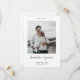 Den här enkla, snyggt moderna bröllop spara datum-platta bildkortsmallen innehåller ett skript med livlig handskrift under fotot på framsidan. Den ser underbar ut med antingen vassa eller rundade hörn. Prova att båda titta i redigeringsläge för att se vilka klämmor du har. Du kan välja att ändra teckensnitt, interpunktion eller färg som används för olika inslag av den här designen framifrån och/eller bakåt. Du kan t.ex. välja att ge ett visst färg till namntexten på framsidan, eller ändra texten SPARA DATUM ovanför framfotot till SPARA VÅRT DATUM eller SPARA DATUM eller något annat helt annat. Du kan välja att ta bort något eller ändra en text fält helt och hållet med ett annat meddelande. Bakgrunden på båda sidor är så genomskinlig att färg på den pappra helt enkelt blir som baston, men du kan redigera detta och välja ett specifikt färg på ena eller båda sidorna om du vill. Vi har lagt till en exempeltext på baksidan så att du kan redigera den efter dina behov. I stället för att ange din egen bröllop webbplats adress kan du välja att ta bort vår exempelwebbplats adress och raden ovanför den utan att ersätta de delarna av designen. Och i stället för att redigera vår exempeltext på baksidan med ditt eget meddelande kan du helt enkelt ta bort all den texten och lämna baksidan av kortet tomt utom för ditt foto, kanske för att lämna skriva ditt eget meddelande senare eller skicka utan någon text på baksidan. Du kan också ta bort vårt exempelfoto utan att ersätta det om du inte vill lägga till ett andra foto utöver det på framsidan. Den pappra standardtypen, projektionsyta, har en mjuk värme och motstår smörjning, så det är ett underbart val att skriva ett eget meddelande. Du kan redigera detta och välja Halvglans eller uppgradera till en annan papper typ i stället. Var snäll och kom ihåg att ta bort all vår exempeltext på båda sidor och våra exempelbilder i fodral. Anpassa den här snyggten moderna två bröllop spara datum-platta bildkortsmallar med det intuitiva redigeringsprogrammet verktyg, dina favoritfoton och din inspiration och gör den unik för dig!