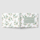Den vackra gästen bok i bröllop förmedlar enkel elegans och charm med sin mönster av utspridda träsprit av grönska och små persikoknoppar av färgad. En matchande rektangulär ram för pastellsage-grönt omger den vita texten i det smakliga stil. Anpassa framsidan av gästen bok med briden och brudgummen namn och bröllop eller annan önskad text. Gästryggraden bok har också en textmall som du kan använda för att anpassa.