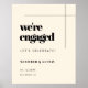 Vi är engagerade: välkomsttecken för förlovningsfesten. Minimalistiskt men slående: Antag den här något återtypografiska utformningen för ditt bröllop-kontorsverk, med en elegant kräm färg. Fullständigt anpassade text, färg och bakgrunder.