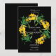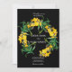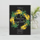 En enkel inbjudan från elegant bröllop av blommor i vild i ljust och glatt färg. Inbjudan innehåller blommor i form av ett runt, blommande ram, med svart bakgrund.