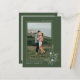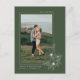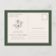 Den här Emerald Save-vykortet innehåller handdragna elfenbensblommor i förlovningen bild. Den här utformningen är modern och mycket elegant. Den gör fotot till ett centrum för uppmärksamheten. Baksidan har en enkel men vacker design som visar alla detaljer i bröllopsdagen. Dusty grönt gräns och anemoner dekorerar denna minimalistiska vykortsutformning på elfenbensbakgrund. Gör det första intrycket för dina gäster oförglömligt med den här blommigten och spara datumet.