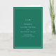 Enkelt uppfällt bröllopsprogram med en modern utformning av eleganten. Täcket har dina två första monogram tillsammans med dina bröllop-detaljer i vitt över en juvelfärgad grönt. Insidan har din bröllopsfest på den lämnat sidan och din ceremoni på högerna. Baksidan har ditt personliga tack till dig. All design inslag färg kan ändras i designredigeringsverktyget i verktyg. En chic och snyggt som är underbar för ett minimalistiskt par.