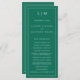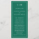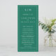 Modern Bröllopsprogram med en enkel men ändå elegant utformning med traditionell layout. Ditt två brev-monogram ligger överst tillsammans med dina detaljer omgivna av ett tunt gräns. All inslag är vit över en juvelfärgad bakgrund som framträder i grönten och kan ändras i designredigeringen i verktyg. En minimalistisk utformning med en klassisk känsla som är underbar för ett formellt bröllop.