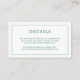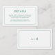Ett enkelt litet elegant i bröllop-höljet med en modern utformning med detaljerna omgivna av ett tunt gräns och ditt monogram på baksidan. All design inslag är i en grönt som framträder med juvelton och kan ändras i designredigeringsverktyget i verktyg. En chic och snyggt som är underbar för ett minimalistiskt par. Använda dessa djurutrymmeskort för att ge anvisningar och andra viktiga uppgifter som dina gäster kan behöva känna till, t.ex. hotellrum, parkering, pendelinformation osv.
