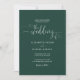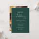 Denna enkla eleganta bröllopsinbjudan kan anpassas med dina festdetaljer i chic typografi på en smaragdbakgrund med ditt speciella foto på baksidan. Designad av Thisisnotme