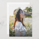 Ett enkelt modernt skript för examensmeddelande för din high school eller college-examen. Lägg till ditt eget stilfulla foto. Foto med skript för examen och vit typografi överlagd på bilden. Boho-mönster på baksidan av inbjudan.