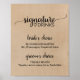 Denna enkla falska kraft kalligrafi signatur dryckes skylt är perfekt för ett rustikt bröllop. Den minimalistiska designen har en elegant borstskrift och ett vackert feminint hjärta på en falsk kraft bakgrund.