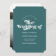 Den här enkla bröllopsinbjudan för snyggt innehåller återformaterad fotografi på framsidan över bakgrunden i anpassningsbar färg (visas i tårblått). På baksidan finns en fotomall och textmallar för att dirigera gäster till bröllop webbplats. Anpassa texten eller ta bort den om du inte vill.