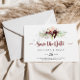 Detta enkla, färgstarka, klassiska blommigt vågrät bröllop spara datum är perfekt för ett rostfritt bröllop. Utformningen har blommor, rosa, och vita blommor med grönt löv och röda bär som är ordentligt buntade i attraktiva buketter.