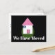 Ett vanligt svart och vitt vykort för färgnyhet i hemmet som hjälper dig att informera din familj och dina vänner om att du har bytt adress. Utformningen är helt enkelt vacker med svart och vit typografi, med en slottsbild som tillför en aning roligt och stollig. Perfekt om du är en familj eller en individ - uppdatera informationen så att den återspeglar adress, ändra meddelandet på baksidan om du vill och du är redo att tala om för dina kära att du är på väg till ett nytt hem.