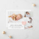 Meddela att nyfödd bebis kommer med vårt enkla och moderna födelseattest för foto i baby. Utformningen har en fyra fotosamlingslayout för att visning dina nyfödd bebis-foton. Anpassa till baby namn, födelsedatum, födelsestatus och baby monogram i ett rosa hjärta. Den omvända sidan har anpassningsbar hälsning och kärlek från föräldrarna.