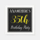 Den här enkla och elegant pappra napkin-designen innehåller ett meddelande som "ANamehär's 35e Födelsedagsfest", med "35e" i gult-färgad i finare, i ett fyrkantigt område med svart färgad med en enkel gräns-kontur. Namn kan anpassas. Napkins som dessa kan kanske användas i en födelsedagsfest till någon som firar sin trettiofemårsdag. [~Z0000150]