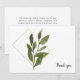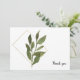 Begravningstack. Familj namn och tack på baksidan. Typografi. Vit bakgrund. Foliage. Enkelt.