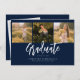 Studenten 4 Photo Collage Script Navy Blue Script Announcement Card. Anpassa detta enkelt genom att ändra texten och ersätta bilderna med dina. Ett modernt och trenderare sätt att tillkännage er studenten i år!