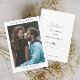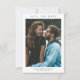 Enkel Foto Bröllop Spara Datum Inbjudan med minimal typografi och foto på framsidan. Baksidan har ytterligare detaljer.