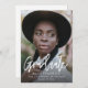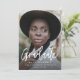 En enkel modern examensannonsering för foto för din high school eller college examen. Lägg till ditt eget stilfulla foto. Foto med examensformulering och vit typografi överlagd på foto. Boho-mönster på baksidan av inbjudan.