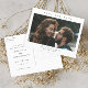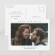 Enkel Fotobryllup Spara Datum Postkort med minimal typografi och foto på framsidan. Baksidan har ytterligare detaljer.