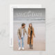 Det här enkla fotot som sparar snyggten på vykortet är perfektens sätt att meddela din förlovning och kommande bröllop till vänner och familj. På framsidan av det här lodrät sparas datumet med en modern typbehandling i vitt högst upp på ett enda foto. Baksidan innehåller ett andra foto tillsammans med ett rum för ett anpassningsbar som kan innehålla information, en bröllop-webbplats med mera. Den här originalversionen av Lea Delaveris Design för att spara vykortet för datum ingår i en samling där du kan hitta mer färg och stilar.