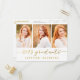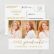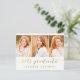 Trendig ett modernt fotovykort som bjuder in din familj och dina vänner till din dotters studentfest. Simple Script Photo Collage | Inbjudan till studentfest för 2015. Utformning av Elke Clarke © Besök vår butik www.zazzle.com/monogramgallery* för mer design och stilar. En enkel guld-folie av typografi med handskrivet skript, teckensnittsöverlägg (utskriven fotoeffekt) med ord "2015 Student" med tre fotosamlingskonstruktioner. Ersätt exempelfoton med egna. Vita och guld färg. Annat stilar och färg tillgängligt.