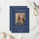 En fotoordning av elegantens personlig för begravningsminnesprogram. Design har en enkel fotomall med klassisk, modern vit typografi i blå bakgrund. Enkel att anpassa text och bild. Vi vill framföra vårt djupa deltagande till er och familjen för er förlust.