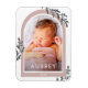 Den enkla och moderna designen har grått botaniskt grenar med en feminin rosa foto och namn i söt-skript. Året anges helt enkelt i vit typografi. Perfekt för att fira ett nyfött baby, eller visning ett speciellt foto.