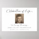 Enkel fotoskript Firande av livets slutskede. Minimalistisk stil med vattenfärg salvia blad till vänster och ett förberett skript för Firande av liv och Till minne av. Anpassa enkelt resten av texten.