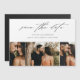 Ett romantiskt, enkelt foto sparar datumkortet med vacker manusgrafi, 3 foton och minimal text. Baksidan är magnetisk. Klicka på knappen Redigera om du vill anpassa designen.