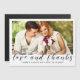 Tack till gästerna i bröllop i stil med det här moderna fotot i anpassningsbarna tack vare det magnetiska kortet. Den här enkla men elegant designmallen innehåller ditt foto på framsidan i vitt med ord "Kärlek och tack" i svart skript och ditt namn med bröllop-datum för att anpassa sig. Gratulerar på bröllop och bästa önskemål! Designad av konstnären Susan Coffey.