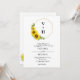 En inbjudan från elegant bröllop med en gyllene ram av glada solblommor. Inbjudan utmärks av dess enkelhet, sofistikering och modernitet Lämplig för solros älskare och en underbar dag bröllop