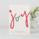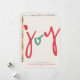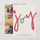 Dessa minimalistiska 5" x 7" högtidskort har hälsningen "glädje" i en stor röd och grön rolig teckensnitt med den ytterligare redigerbara hälsningen "Önskar er fred, kärlek & glädje denna högtid." Lägg enkelt till ditt/dina efternamn och år. Lägg till tre av dina favoritfoton på baksidan av kortet.
