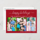 Ett enkelt rött vykort för helgdag med 3 fotokollage. Anpassa hälsning (till en början "glad helg") i ett vitt skript i snyggten med dekortecken. Lägg till din familj namn, första namn och året.