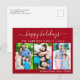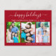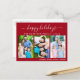 Ett enkelt rött vykort för helgdag med 3 fotokollage. Anpassa hälsning (till en början "glad helg") i ett vitt skript i snyggten med dekortecken. Lägg till din familj namn, första namn och året.