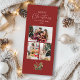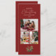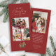 Ett enkelt, elegant helgdag julkort med en illustration av vattenfärgen gräs löv med säsong-musslor och modern och elegant typografi på rikens röda bakgrund. En samlingsplats med tre foton är längst fram för dig för att anpassa dig till dina familjefotografier och familjens namn, och ytterligare ett utrymme på motsatt sida för ett 4:e foto plus utrymme för att lägga till ditt personliga julmeddelande och signera hälsning för dina kära den här julhelgen.