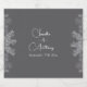 Förbered en naturlig lugn med detta minimalistiska och moderna bröllop-märke. Den rena, centrerade layouten är försedd med en delikat vit linje teckning från eukalyptus löv med en enkel grått-bakgrund, som symboliserar varaktig kärlek och tillväxt. Det är en elegant och väl avvägd utformning för par som uppskattar förfinade, naturinspirerade detaljer. Den här bröllop-etiketten är en del av en fullständig uppsättning.