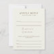 Gör en påstående av underskattad elegans med detta enkla och klassiska textbaserade bröllop OSA-svarskort på neutralt varmt vitt. Använda anpassningsalternativet för att ändra färg och typsnitt till kostym till temat bröllop. Anpassa all text på det här inmatningskortet så att du kan välja att sätta dig ner i måltid för varje gäst som ska närvara.