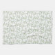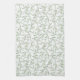 Vacker kökshandduk med handmålad akvarellmönster med bleka salvia gröna blad på en ren vit bakgrund.
