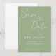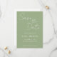 Enkla vigselfästningar med stiliserad vit text på en trendig, grön bakgrund i Sage-färg. Redigera och ersätt namn, datum och plats med dina egna. Välj storlek på inbjudan och pappersstil.