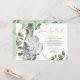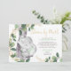 ÅH BABY! En söt liten nöt är på väg! Imponera dina gäster med denna vackra könsneutrala "baby shower via post"-inbjudan med akvarellillustration av en söt baby elefant omgiven av frodig grönska i grönt och guld. Använd mallfälten för att lägga till dina detaljer. Om du vill ändra typsnitt, färg eller textplacering klickar du helt enkelt på knappen "Anpassa ytterligare".