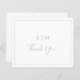 Ett enkelt budgetkort i bröllop är ett tack för att du har ett modernt men ändå elegant-format med två brev monogram tillsammans med ett tack i ett handskriftsteckensnitt som omges av ett tunt gräns. Baksidan har ditt personlig-meddelande. All inslag är i sage-grönt och kan ändras till valfritt färg som du vill i verktyg för designredigering. En chic och snyggt som är underbar för ett minimalistiskt par.