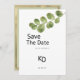 Enkel grönt för vattenfärgsmynning i elegant, vit och guld eucalyptus blommigt löv Bröllop spara datum är perfekter för alla klassofistikerade och sofistikerade glam-flickor. Den här designen är perfekt för händelser i trendig och snyggt party. Utforma med meddelandet och informationen. Alla designer skrivs ut.